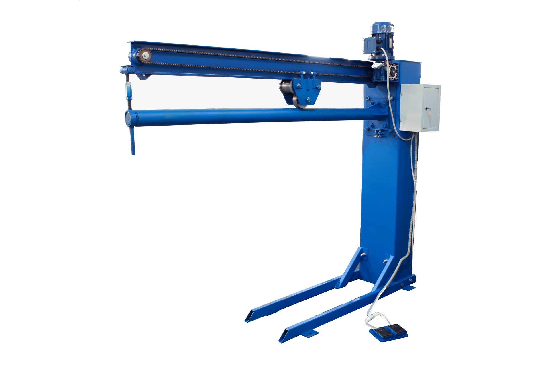Консольный фальцеосадочный станок с возможностью обработки замка на трубе с двух сторон, тем самым увеличивая длину обрабатываемой заготовки в два раза.