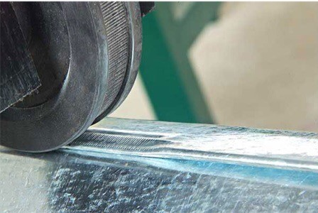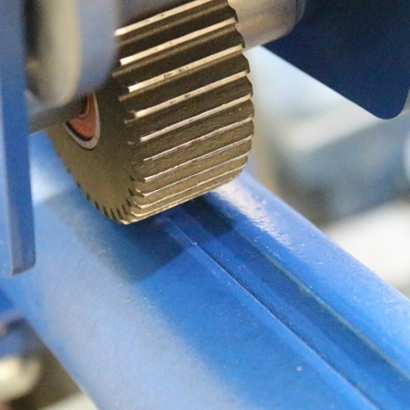 По желанию заказчика при заказе фальцеосадочного станка гладкий ролик можно заменить ребристым. Станок работает с окрашенным металлом.
