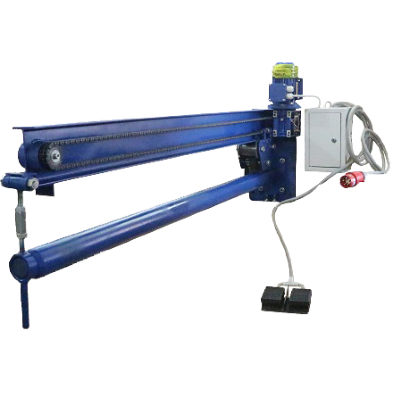 Фальцеосадочный станок разработан для осадки лежачего фальца. Есть консольные и каретные варианты исполнения станка. Каретная конструкция исполнения позволяет зафиксировать заготовку на хоботе и приступить к прокату без лишних усилий. Для герметичности шва достаточно пару раз прокатить каретку по хоботу. Движение каретки осуществляется с выносной напольной педали. Станок монтируется на стену, увеличивая рабочую площадь производства, однако, если установить поворотную петлю, то станок можно поворачивать к стене и так же легко приводить его в рабочее состояние лёгким движением руки.