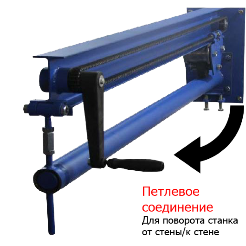 Станок монтируется на стену, увеличивая рабочую площадь производства, однако, если установить поворотную петлю, то станок можно поворачивать к стене и так же легко приводить его в рабочее состояние лёгким движением руки.