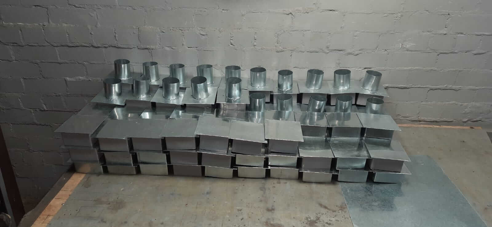 Изготавливается обычная труба, делается вырез или же сначала делается заранее заготовленный вырез по лекалам. Используется вальцовочный, фальцегибочный и фальцеосадочный станок (простая труба). Боковая часть изготавливается вручную на трубе или с помощью станка для изготовления переходов.