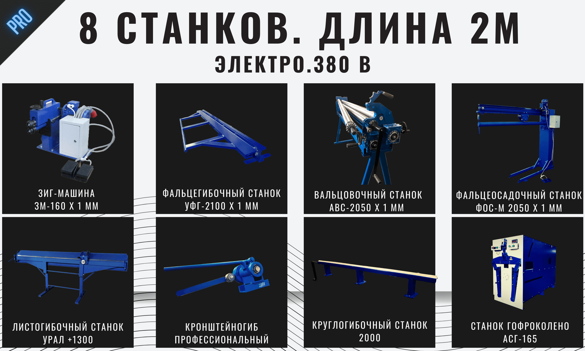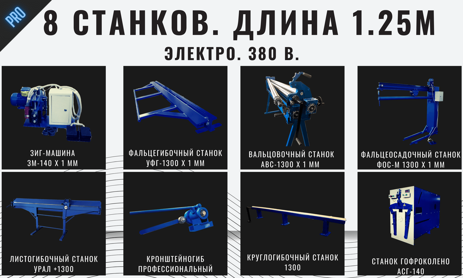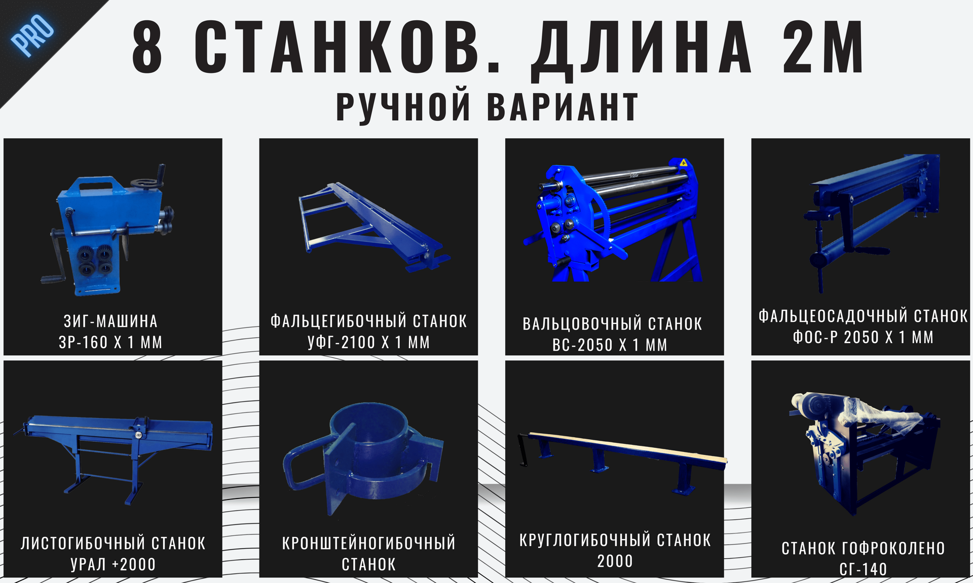 Для изготовления водосточной продукции Вам потребуются следующие станки: Листогибочный станок (гибка и резка металла), Фальцегибочный станок (изготовление фальца - шва для последующего соединения трубы), Вальцовочный станок (для того, чтобы преобразовать прямой лист металла в круглую трубу, скруглить его), Фальцеосадочный станок (для закрытия фальцевого соединения, шва), Зиг-машина (для изготовления сегментов, гофрирования, отбортовки или нанесения ребер жесткости), Круглогиб (для изготовления S-образного соединения желобов между собой и придания данному соединению большей жесткости) и кронштейногибочный станок (для изготовления крюков, кронштейнов). Дополнительно, для большего удобства стоит рассмотреть станок для изготовления гофроколена, так как он существенно снижает вашу производственную нагрузку и быстро окупается за счёт того, что детали, изготовленные на данном станке (гофрированные трубы) выглядят более качественно, чем если бы вы изготавливали сегментный отвод использую зиг-машину.