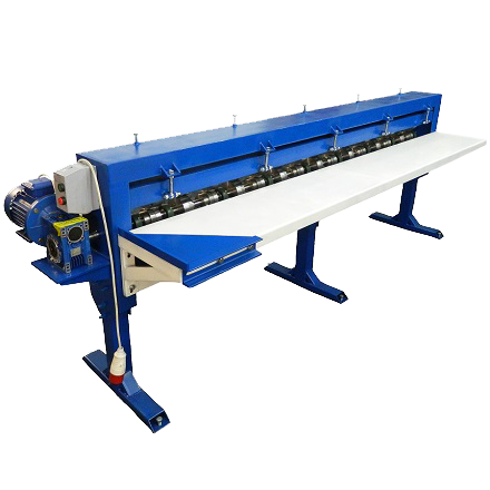 Станки серии РЖ для нанесения ребер жесткости, используются при производстве прямоугольных воздуховодов для придания дополнительной жесткости вентиляционным коробам и уменьшения вибрации воздуховода при прохождении потока воздуха. Каждый станок наносит ребро жесткости Z, U и \__/ формы. Толщина металла: 0,4-1,2 мм. Длина до 2550 мм.