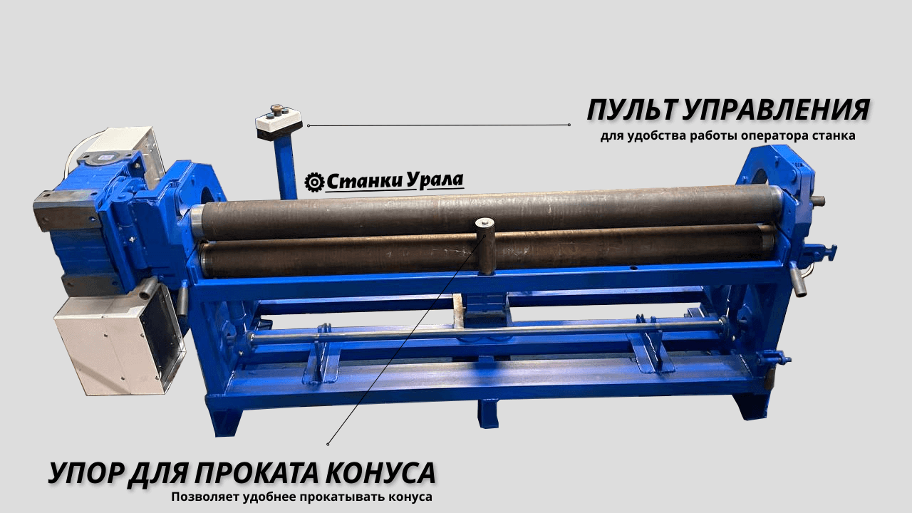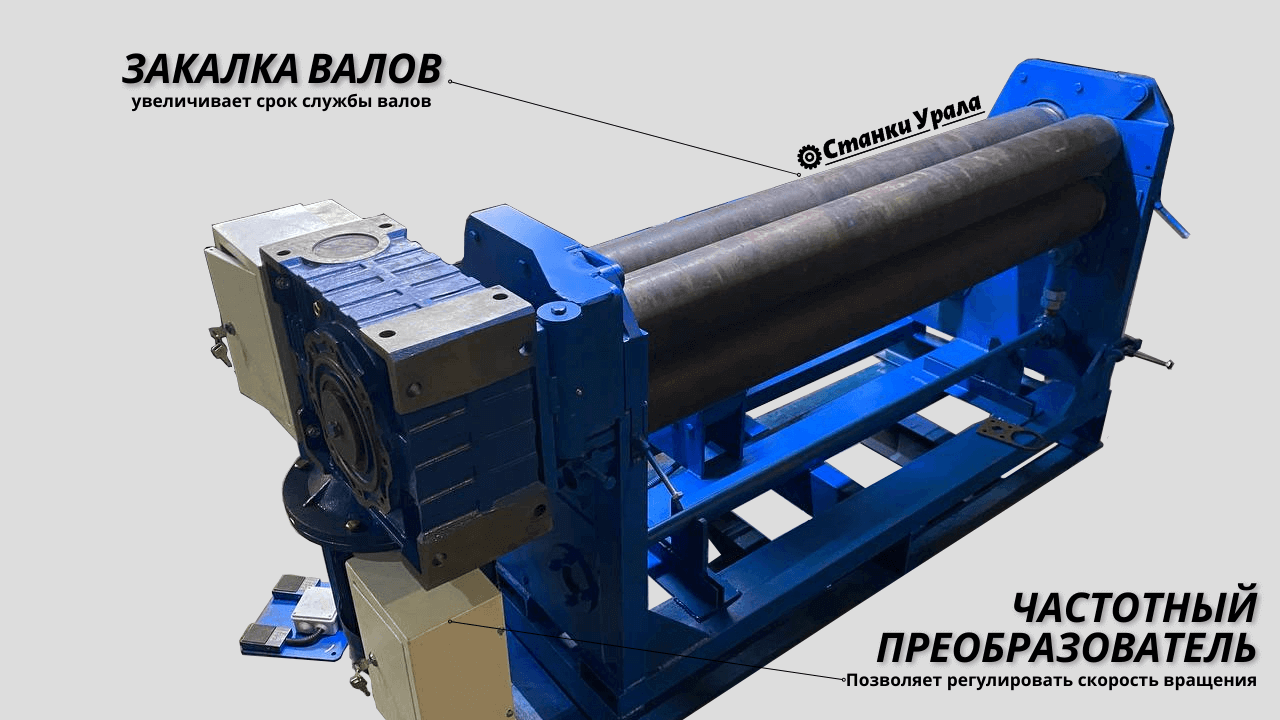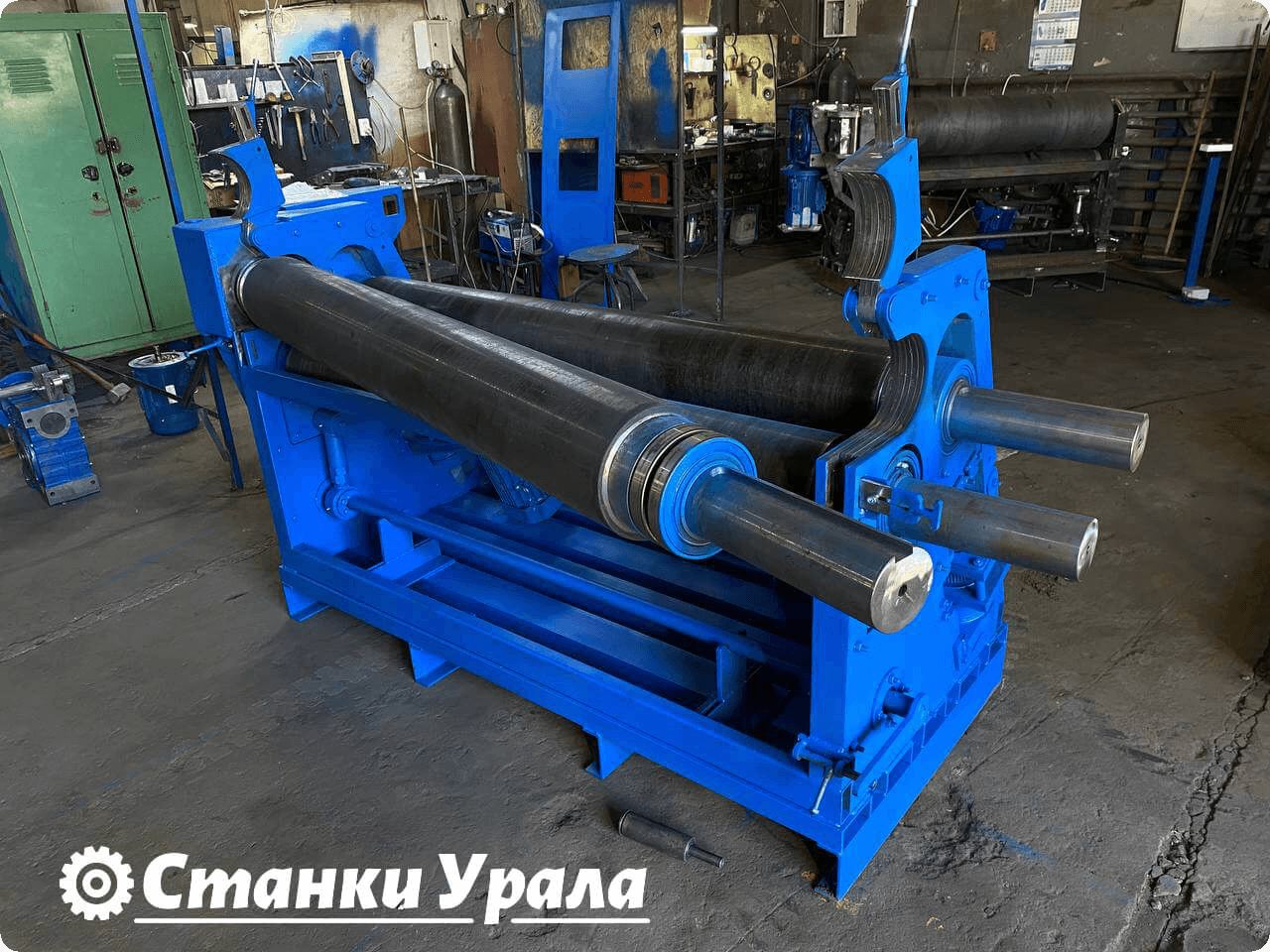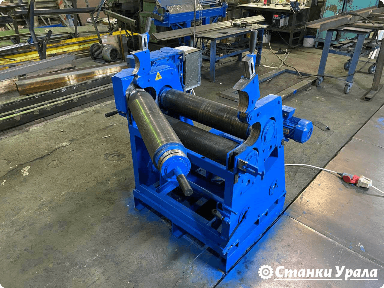 Станок предназначен для гибки-прокатка листовой заготовки через валки агрегата.Изделия могут иметь как замкнутый контур, так и открытый.