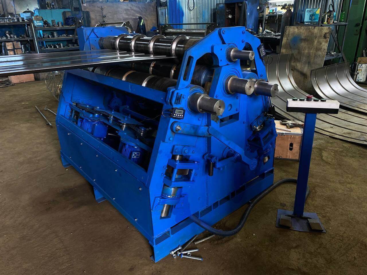 Процесс обработки представляет собой гибку-прокатку листовой заготовки через валки агрегата. Готовые изделия могут иметь как замкнутый контур, так и открытый. Основная работа проделывается тремя валками, из которых нижний и боковой вращаются в прямом и обратном направлении, верхний вращается в прямом и обратном направлениях и перемещается вверх-вниз. Легкость в обслуживании достигается за счет простой и полностью разборной металлической конструкции станка. Полное отсутствие прямых участков в заготовке.