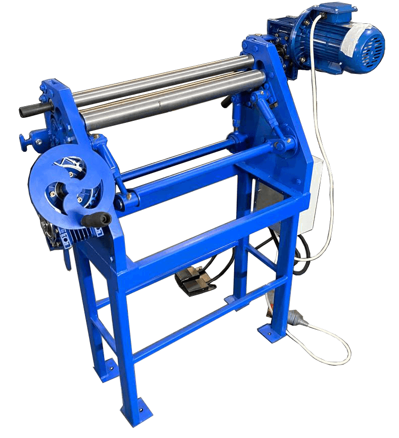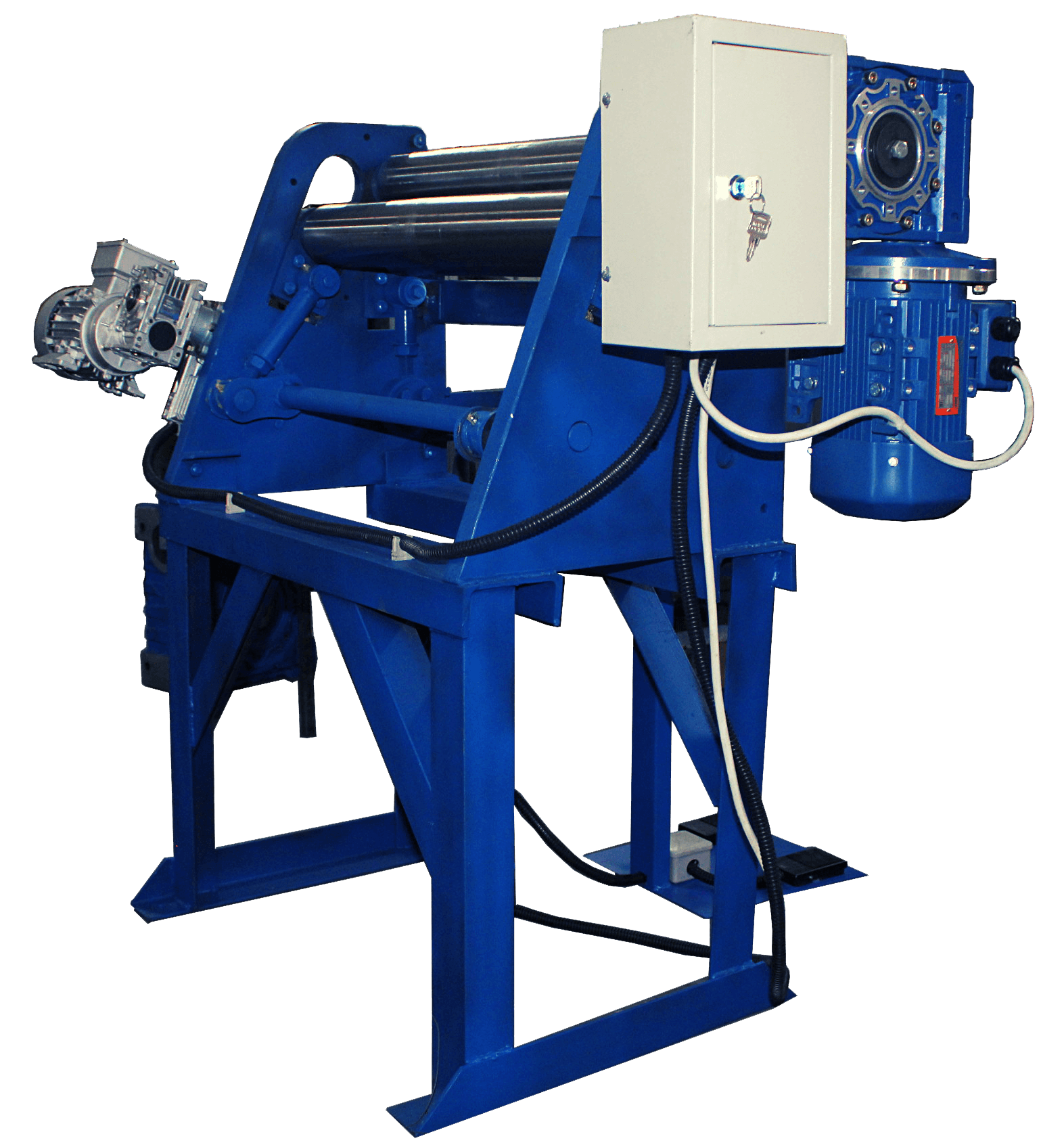 Трехвалковые ручные и электромеханические гибочные машины (вальцы) предназначены для эксплуатации в условиях малых мастерских. В зависимости от модели трехвалковые ручные станки этой серии могут гнуть листовую сталь различных марок толщиной от 0.4 мм до 10мм и длиной до 2 метров.